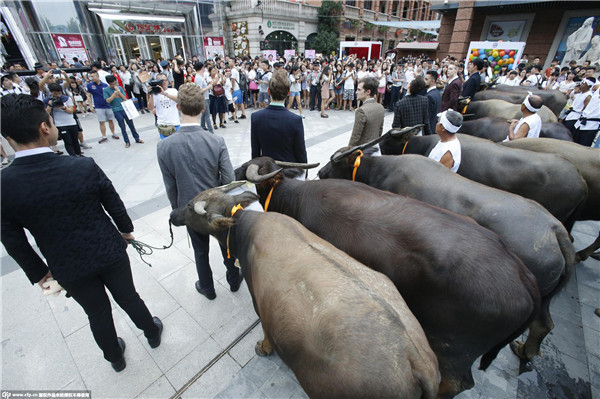 Los jóvenes foráneos llevaban trajes modernos en lugar de ropa china tradicional. Además, cada uno llevaba un búfalo consigo. Este fuerte contraste, sedujo a la multitud que se acercó de inmediato.