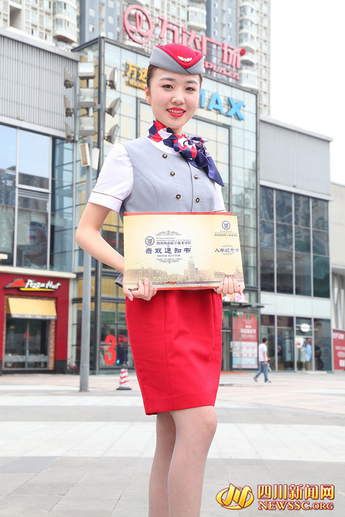 Zhao Liqian viste su uniforme de auxiliar de vuelo. (Foto: newssc)