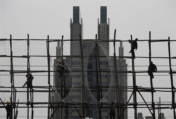 Obreros construyen un nuevo edificio residencial en Pekín.