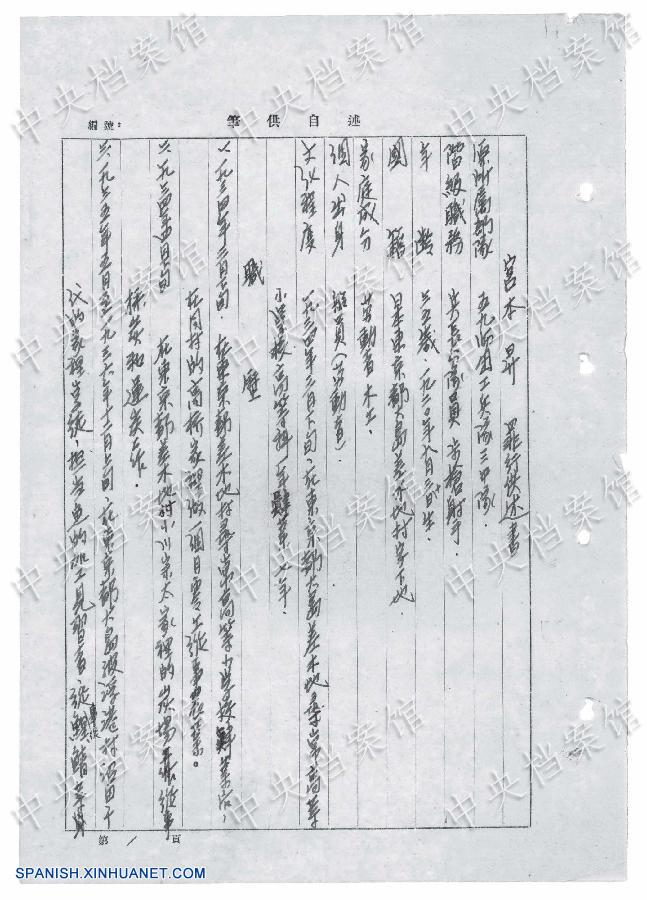 En 1943, Noboru Miyamoto violó, torturó y mató a una mujer que acababa de parir en la provincia de Shandong, este de China, sólo porque sus pantalones quedaron salpicados de la sangre de la mujer. Esto es parte de la confesión que escribió en 1954, la cual fue publicada hoy por la Administración Estatal de Archivos.
