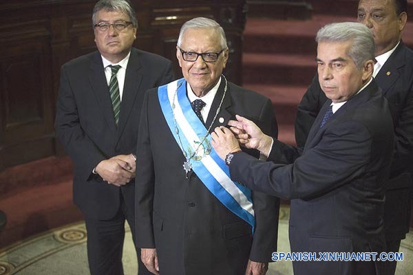 GUATEMALA, 3 sep (Xinhua) -- El Congreso guatemalteco juramentó hoy a Alejandro Maldonado como nuevo presidente de Guatemala, en sustitución de Otto Pérez Molina, quien renunció tras perder su inmunidad y ahora enfrenta a la justicia por acusaciones de corrupción.