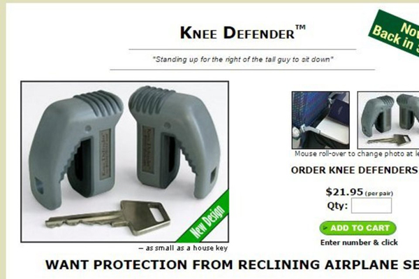 El objeto, llamado Knee Defender (defensor de rodillas, en inglés), está hecho de plástico, tiene el tama?o de una llave y la pareja se vende por menos de 22 dólares (menos de 20 euros), pudiéndose utilizar en la mayoría de aviones comerciales.