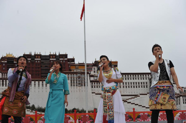 Los 3 millones de residentes en el Tíbet han celebrado a su manera el aniversario de la región autónoma. En la plaza Palacio Potala, los cuatro pilares han sido pintados de nuevo.