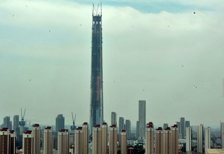 Tianjin, 09/09/2015(El Pueblo en Línea) - La foto muestra la gigantesca Torre de Tianjin (117 pisos). Con una estructura central de 596,5 metros, se convierte en el segundo edificio más alto del mundo, después del Burj Khalifa de Dubai, en Emiratos árabes. La construcción de la torre, que ya tiene una superficie de 847.000 metros cuadrados, se puso en marcha hace siete a?os.