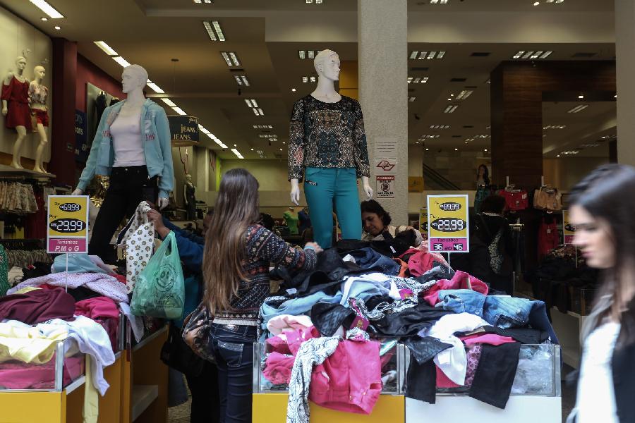 Mujeres compraron ropa en una tienda en el centro de Sao Paulo, Brasil, el 14 de septiembre. De acuerdo con prensa local, después de que la agencia de calificación crediticia Standard & Poors anunciara la pasada semana un corte en la nota de crédito de Brasil para BB+, con perspectiva negativa, un sondeo revelado por el banco central de Brasil indicó que la previsión de los analistas del mercado financiero apuntó que la economía brasile?a va a contraer a 2,55% durante 2015 y en el a?o 2016 terminará con una contracción de 0,60%.