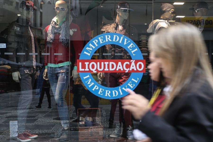 Una mujer pasó por una tienda, en el centro de Sao Paulo, Brasil, el 14 de septiembre. De acuerdo con prensa local, después de que la agencia de calificación crediticia Standard & Poors anunciara la pasada semana un corte en la nota de crédito de Brasil para BB+, con perspectiva negativa, un sondeo revelado por el banco central de Brasil indicó que la proyección de los analistas del mercado financiero apuntó que la economía brasile?a va a contraer a 2,55% durante 2015 y en el a?o 2016 terminará con una contracción de 0,60%.