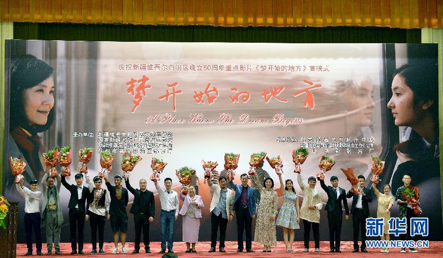 El 16 de septiembre se celebró en el Gran Palacio del Pueblo el estreno de “lugar del inicio del sue?o”, película producida por el estudio cinematográfico Tianshan para conmemorar el 60 aniversario de la fundación de la Región Autónoma Uygur de Xinjiang.