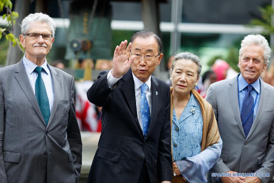 En la ceremonia anual, el presidente de la 70o sesión de la Asamblea General de la ONU, Mogens Lykketoft, tocó la campana de la paz para celebrar el día.