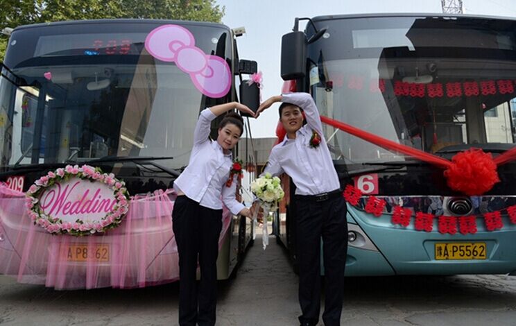 "A diferencia de algunas parejas que prestan mucha atención al esplendor de la boda, queremos utilizar el transporte colectivo para prestar atención a los valores de nuestra vida", afirmó Zheng Yi, la novia de esta noticia.