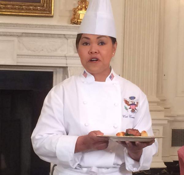 Para preparar el banquete de Estado, la Casa Blanca ha invitado a la chef Anita Lo, de origen chino. Ella, junto con Chris Comerford, chef jefe de la Casa Blanca y el maestra repostera Suzy Morrison han elaborado este menú inspirado en la "cosecha de oto?o".