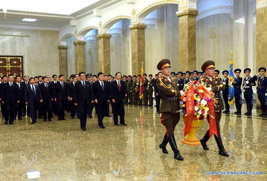 Durante su estancia en el país, Liu realizó una visita al Palacio del Sol Kumsusan y ofreció con respeto una ofrenda floral ante las estatuas de los fallecidos líderes de RPDC, Kim Il Sung y Kim Jong Il.