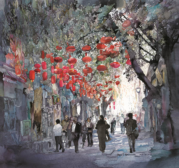 "China es un país tan hermoso, no podría elegir un sitio favorito, porque tenemos muchos", asegura Salminen. "Shanghai fue mi primera experiencia en China. Hemos ido seis veces, y sin embargo yo sigo encontrando temas muy interesantes para realizar acuarelas."