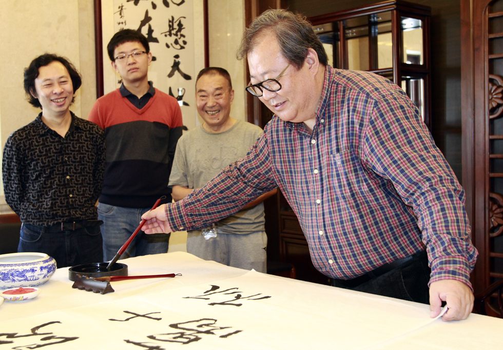 Jidi Majia, poeta y vicepresidente de la Asociación de Escritores de China, realiza una caligrafía durante el Festival Internacional de Poesía de Maotai. (Foto: YAC)