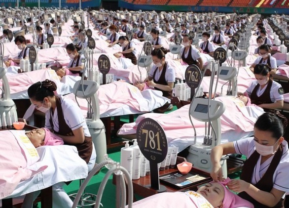 Un grupo de 1.000 clientes recibieron un masaje facial en el centro deportivo de Jinan, provincia de Shandong. Este hecho estableció un nuevo récord Guinness. El evento, organizado por un salón de belleza, formó parte del Festival del Agua Primaveral, organizado en dicha ciudad.