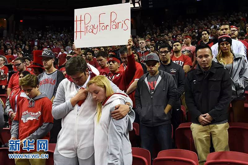 Los espectadores de un partido de la NBA en Las Vegas guardan un minuto de silencio por las víctimas de los atentados de París.