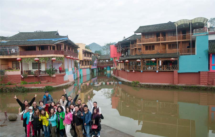 Los turistas posan para una foto en Datong, en la ciudad de Qionglai de la provincia de Sichuan, el 15 de noviembre de 2015. [Foto/IC]