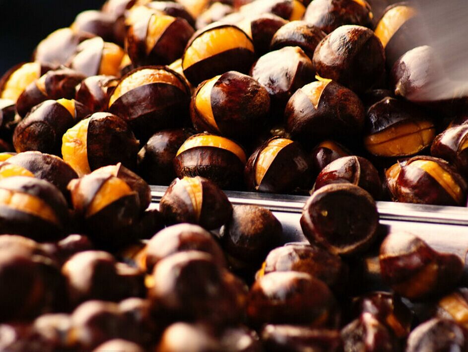 Casta?as asadas es una merienda callejera muy popular durante el invierno en Pekín.