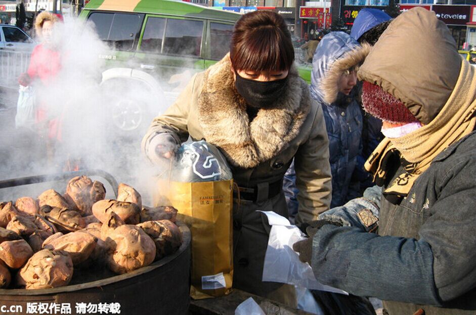 Comer un boniato asado en la calle te mantendrá “abrigado” durante el frío invierno de Pekín.