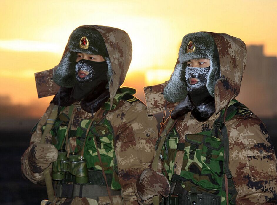 Los guardias fronterizos Xin Guoqiang y Chen Sheng toman posición en una trinchera de hielo para vigilar a los inmigrantes ilegales que quieren entrar a Rusia desde Heihe, provincia de Heilongjiang. Durante la temporada de invierno, la temperatura en Heihe puede llegar a 30 grados bajo cero.