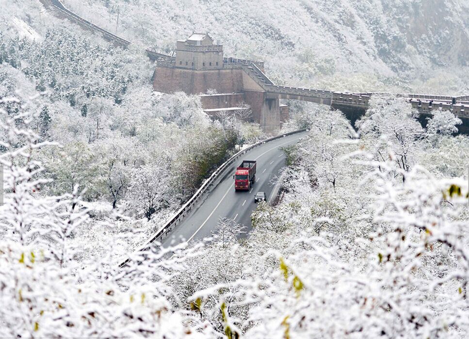 La sección Juyongguan de la Gran Muralla cubierta de nieve.