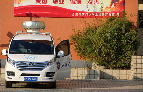Un vehículo de control por radio patrulla un centro de examen en la ciudad de Hefei, provincia de Anhui, el 29 de noviembre. [Foto/IC]