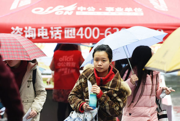 Candidatos llegan al lugar del examen en la ciudad de Hangzhou, provincia de Zhejiang, el 29 de noviembre. [Foto/IC]