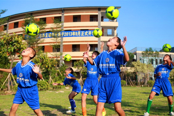 Ni?os de la Escuela de Fútbol de Meizhou, provincia de Guangdong, demuestran habilidades. Esta escuela es un proyecto conjunto entre el club Guangzhou R & F y el Chelsea. Este a?o ya se han matriculado 140 estudiantes, entre 8-12 a?os de edad. [Foto: Qiu Quanlin]