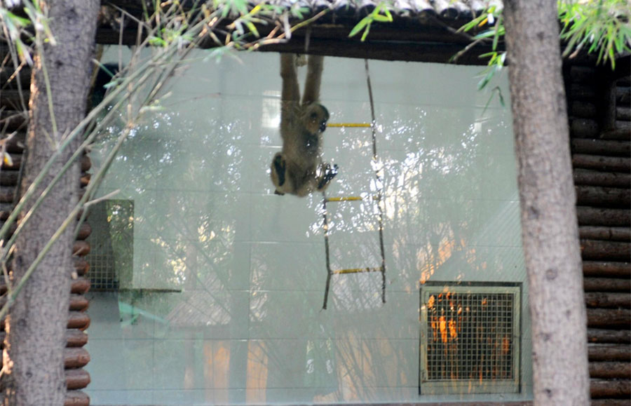 Un gibón juega en una habitación con calefacción en Yangzhou, provincia de Jiangsu, el 26 de noviembre de 2015. [Foto/IC]