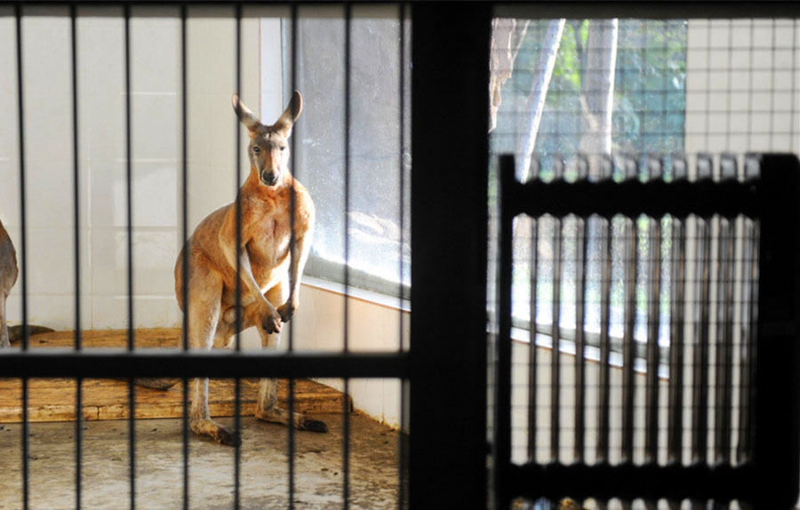 Calentadores eléctricos para los canguros. Estos animales herbívoros, aunque pueden resistir al frío, tienen alfombras de paja o paredes recubiertas para evitar el viento. [Foto/IC]