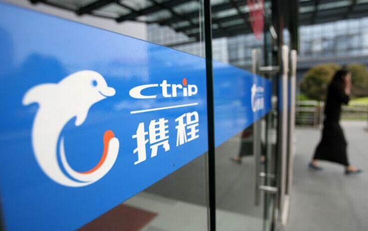 Un empleado chino sale del edificio de oficinas de la agencia de viajes china Ctrip. Shanghai, China, 26 de marzo de 2014.