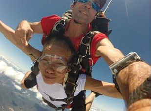La pareja fue a Australia con su hijo en noviembre y hacer algo inolvidable para celebrar sus bodas de oro. Gu, que lleva mucho tiempo luchando contra el cáncer, dijo que él y su esposa son campesinos de la provincia de Jiangsu, y que nunca habían nadado en el mar. Sin embargo, decidieron experimentar algo totalmente diferente. Gu hizo una lista de deseos, en que uno de ellos era lanzarse en paracaídas. Después de caer desde unos 14.000 metros de altitud, Gu no olvidó regalar flores a su esposa.