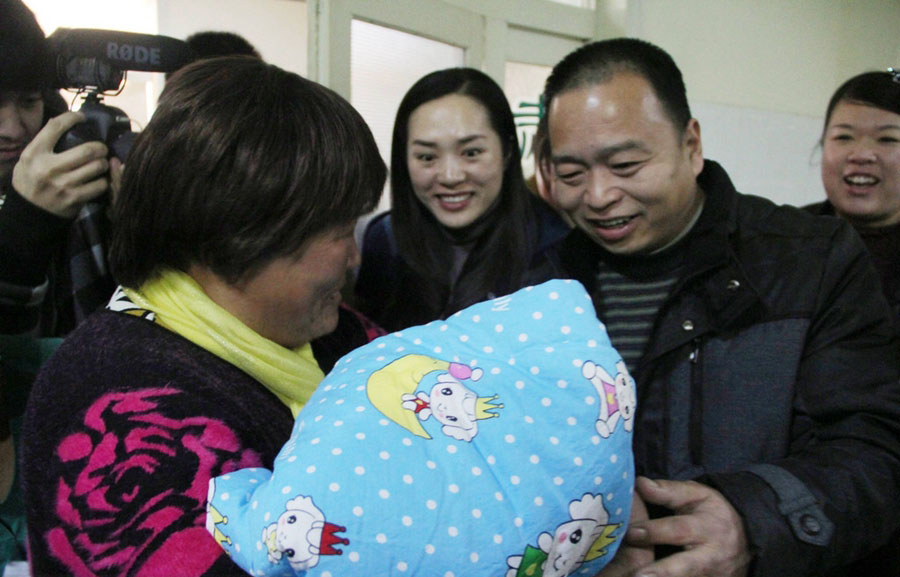Zhang muestra el bebé a su marido. [Foto/IC]