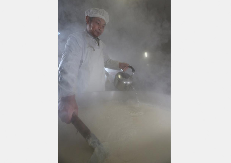 Queso seco de soja elaborado en una planta de la ciudad de Rugao, provincia de Jiangsu. [Foto: Xinhua]