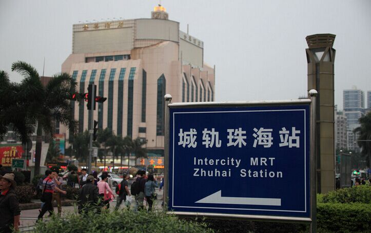 Se?al de tránsito ferroviario interurbano en Zhuhai, provincia de Guangdong.