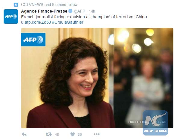Pekín, 28/12/2015(El Pueblo en Línea)-Alrededor del 95 por ciento de las personas encuestadas en línea apoyó la decisión de la cancillería de expulsar de China a la periodista francesa Ursula Gauthier debido a sus comentarios sobre el terrorismo.