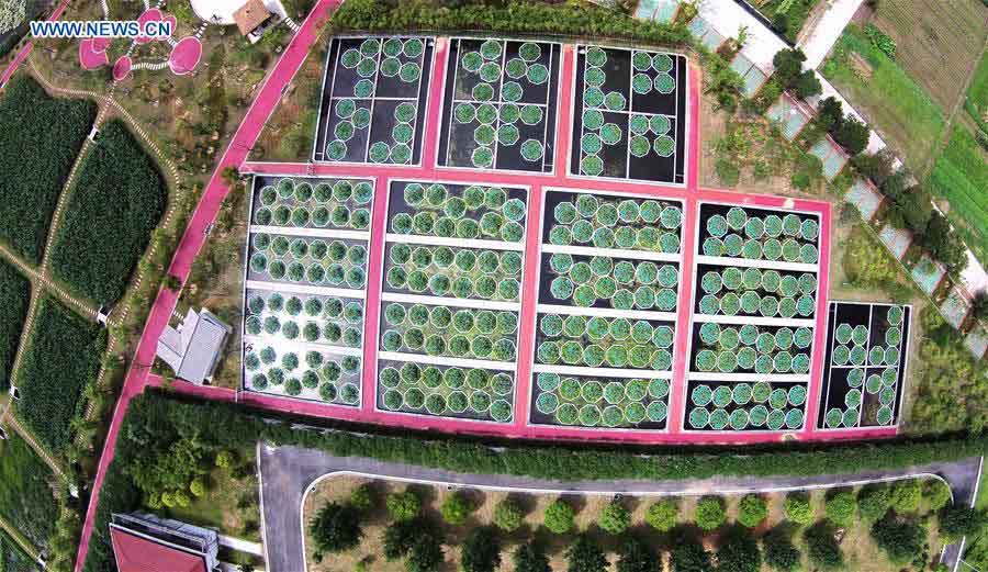 El humedal de Weishui en la planta de tratamiento de aguas residuales de Fotang en Yiwu, provincia de Zhejiang. Foto del 25 de julio de 2015. [Foto/Xinhua]