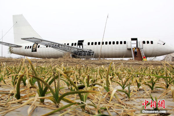 Maqueta de un Boeing 737 sobre un terreno de cultivo. [Foto/Chinanews.com]
