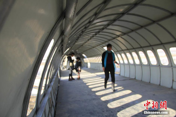 Los visitantes caminan dentro del avión casero. [Foto/Chinanews.com]