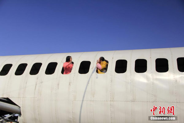 Dos ni?os juegan dentro del avión casero. [Foto/Chinanews.com]