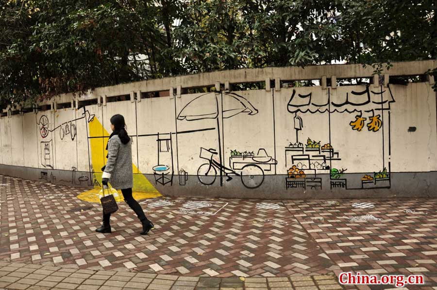 Sus originales creaciones integranplurales discursos estéticos con la dinámica diaria del barrio y la identidad de sus residentes. [Foto: Zhou Dongchao]