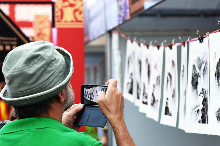Tinta china en una exposición como parte de la celebración mundial de A?o Nuevo Chino organizada por el Ministerio de Cultura de China. Bangkok, 11 de febrero de 2015. [Foto: Xinhua]