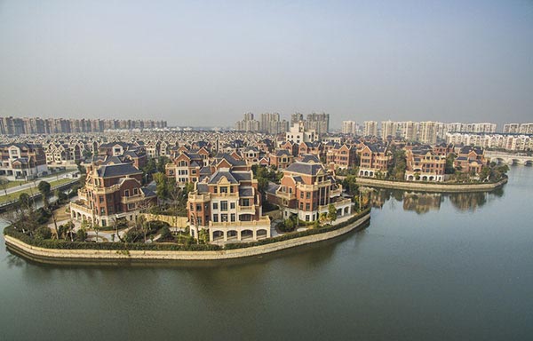 Vista aérea de la nueva aldea de Jiepai, en Danyang, provincia de Jiangsu. Foto del 30 de diciembre de 2015. [Foto/IC]