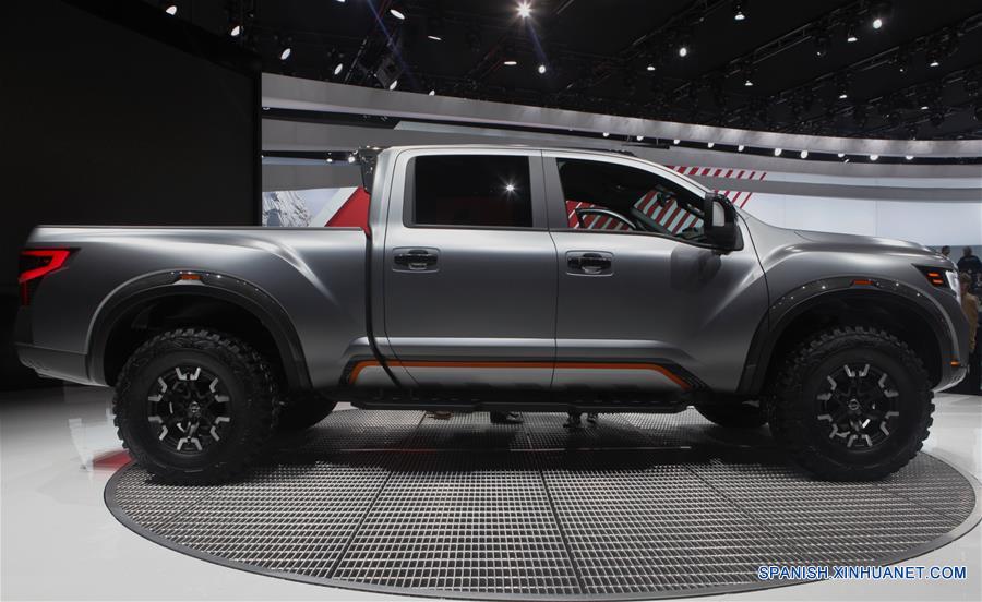 Foto tomada el 12 de enero 2015 muestra un prototipo de automóvil Nissan Titan Guerrero en el Salón del Automóvil Internacional de Norteaméricaen Detroit, Estados Unidos. (Xinhua / Liu Bowen)