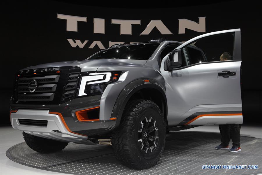 Foto tomada el 12 de enero 2015 muestra un prototipo de automóvil Nissan Titan Guerrero en el Salón del Automóvil Internacional de Norteaméricaen Detroit, Estados Unidos.(Xinhua / Liu Bowen)