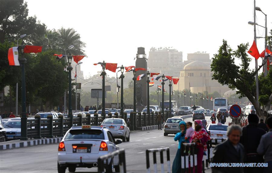 Banderas nacionales chinas y egipcias se ven por las calles de El Cairo, capital de Egipto, 19 de enero de 2016. (Xinhua / Ahmed Gomaa)