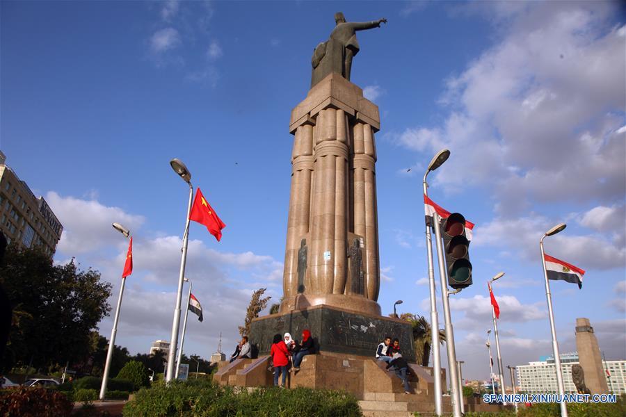 Banderas nacionales chinas y egipcias se ven por las calles de El Cairo, capital de Egipto, 19 de enero de 2016. (Xinhua / Ahmed Gomaa)