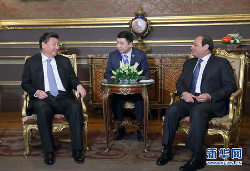 El presidente de China, Xi Jinping (L) sostiene conversaciones con el presidente egipcio, Abdel-Fattah al-Sisi en Quba Palace en El Cairo, Egipto, 21 de enero de 2016. (Xinhua / Ju Peng)