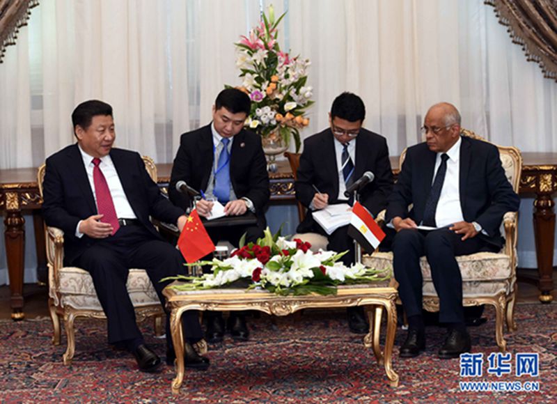 El presidente de China, Xi Jinping se reúne con Ali Abdelaal, presidente del Parlamento recién elegido de Egipto, en El Cairo, Egipto, 21 de enero de 2016. (Xinhua / Rao Aimin)