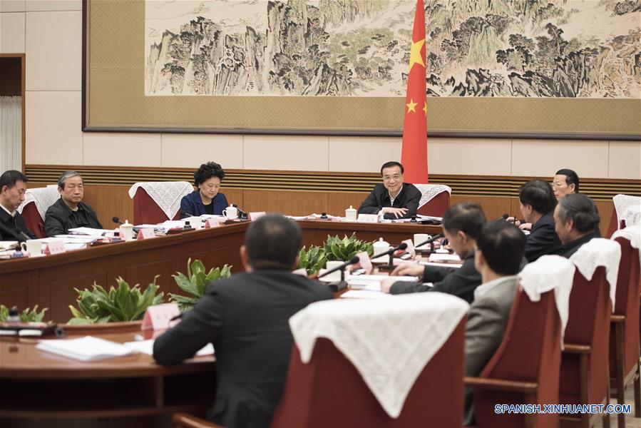 El primer ministro chino Li Keqiang preside un simposio para pedir más apoyo financiero para la modernización industrial en un momento en el que el país se esfuerza por reestructurar su economía en Beijing, capital de China, 25 de enero de 2016. Li presentará en marzo el informe final sobre la labor del gobierno en la sesión anual de la Asamblea Popular Nacional. (Xinhua / Li Xueren)