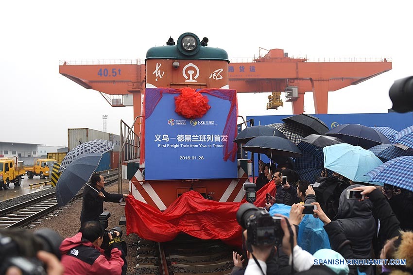 HANGZHOU, 28 ene (Xinhua) -- Un tren de contenedores que une China e Irán partió de la ciudad de Yiwu, en la provincia oriental china de Zhejiang, cargado con peque?os artículos de uso cotidiano en la ma?ana de hoy jueves.